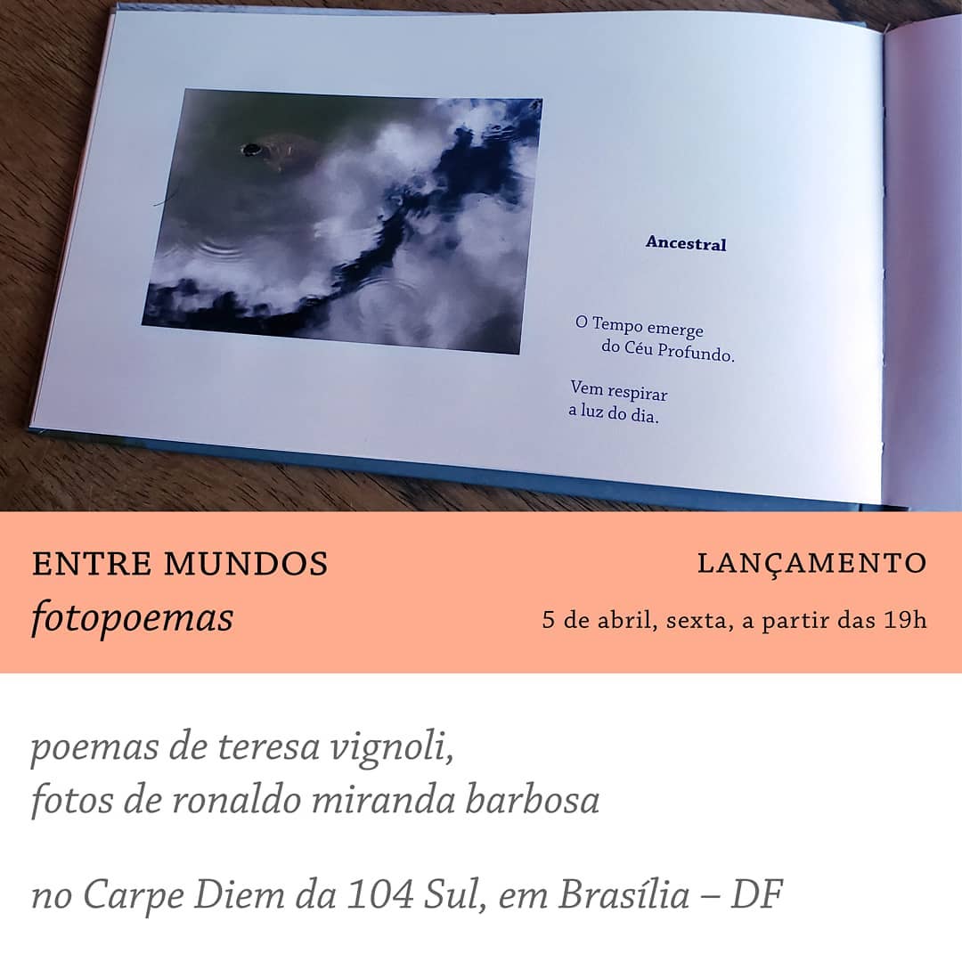 Entre Mundos – fotopoemas – De Teresa Vignoli e Ronaldo Miranda Barbosa. Lançamento na sexta-feira, 5/4, no restaurante Carpe Diem (104 Sul), após as 19h.